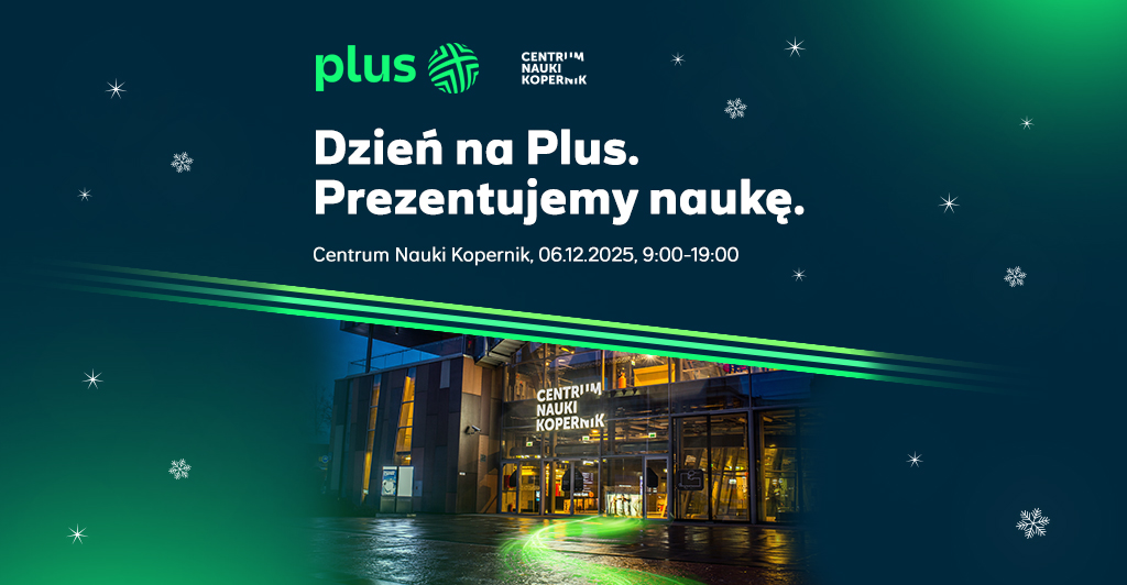 Informacje organizacyjne: Dzień na Plus odbędzie się 6.12.2025 (sobota) w godzinach 9:00–19:00 na terenie Centrum Nauki Kopernik w Warszawie. Obowiązują standardowe bilety wstępu do Kopernika.